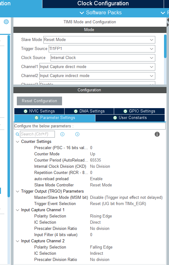 測量器TIM8的slave mode用reset mode (即:一有輸入,即觸發一次reset /update 事件)